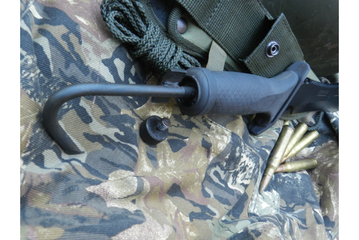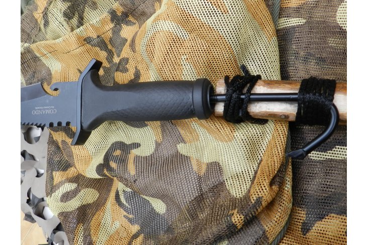 3)Como garfio,colocando una soga por el ojo triangular de cuchillo con la vaina puesta y boleándolo por ejemplo para alcanzar ramas ,arboles cruces de arrollos etc