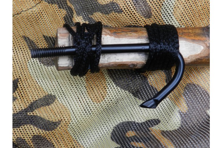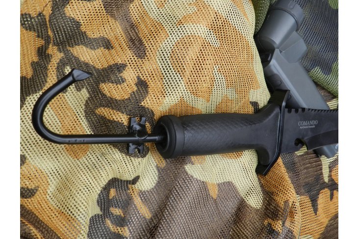 Posee 1 aditamento ( gancho ) que se enrosca al final del mango para tareas de enganche, amarre, etc. El mismo se puede utilizar para transformarlo en lanza eventualmente o poder extender el corte en distancia.