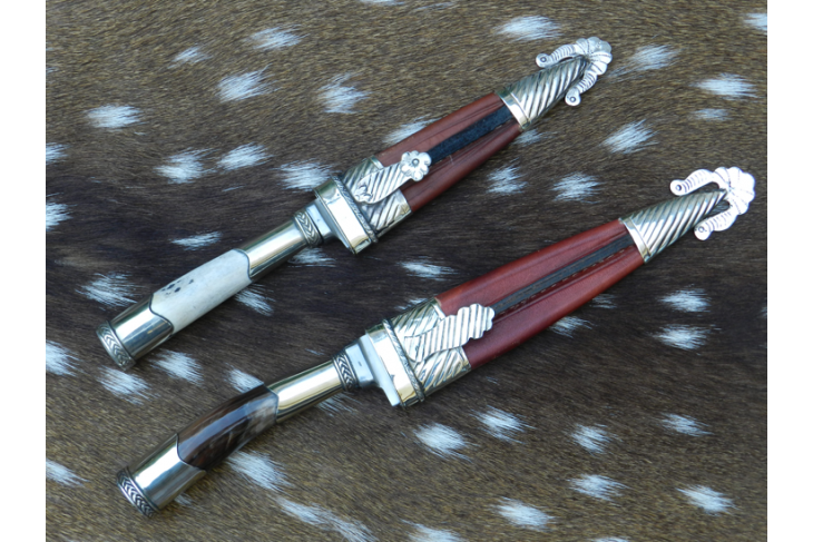 En este modelo el mango toma la forma del cuerno utilizado y los tonos de colores son variables (Desde el Negro total al Crema claro).