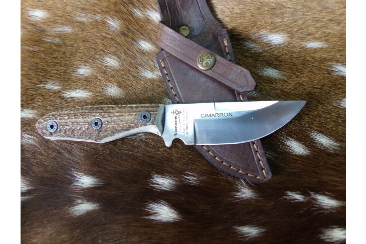 Con hoja de acero inoxidable sueco SandvicK 14CN28, en una sola pieza, dureza final 58 Rocwell C, terminación pulido mate.