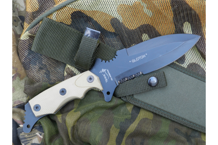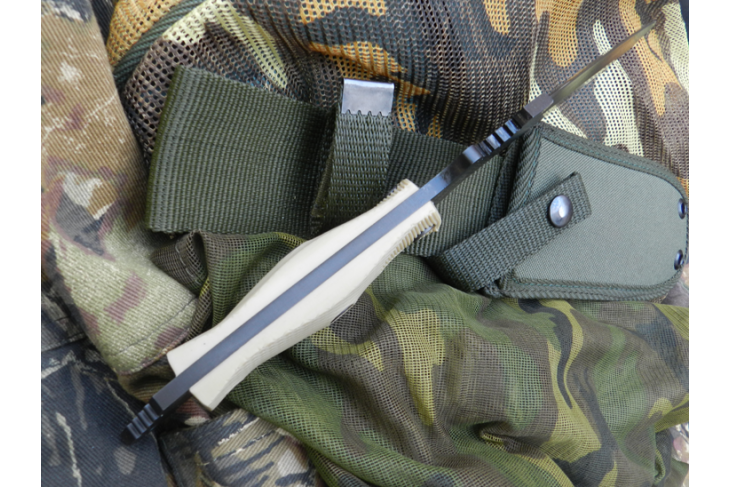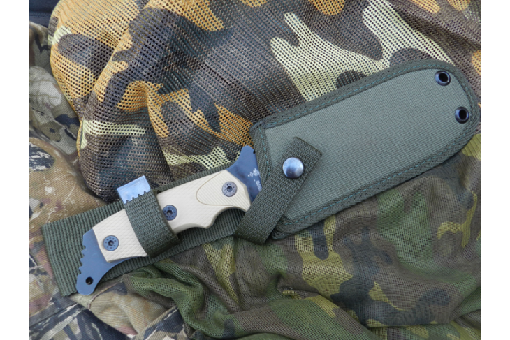 El modelo color arena viene acompañado con vaina de cordura sintetica color verde militar y el modelo con cachas negras con vaina color negro